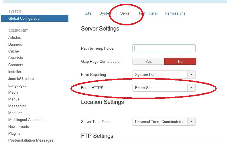 a) zabezpečené pripojenie nastavíte opäť priamo v administrácii CMS v časti Globálne nastavenia, kde v časti Server zmeníte Force HTTPS na Entire Site podla nižšie uvedeného obrázku