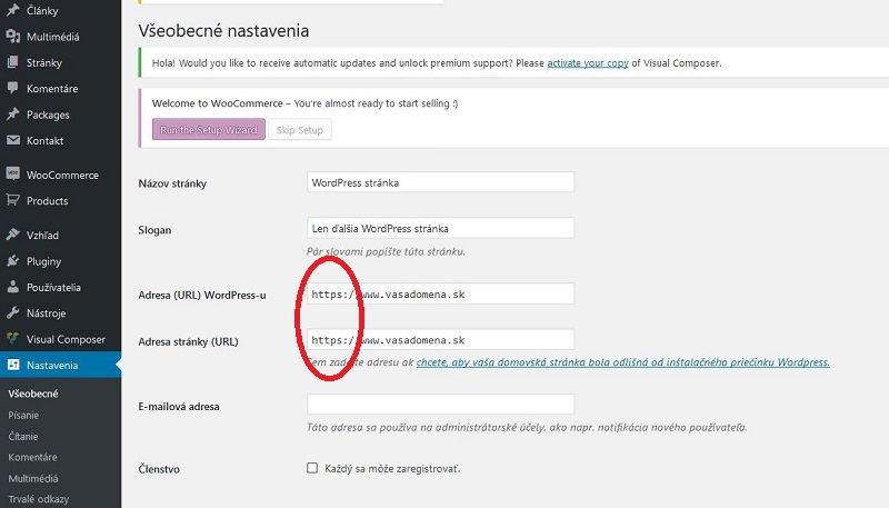 1. Wordpress - zabezpečené pripojenie nastavíte priamo v administrácii CMS v časti Nastavenia, kde zmeníte URL podla nižšie uvedeného obrázku